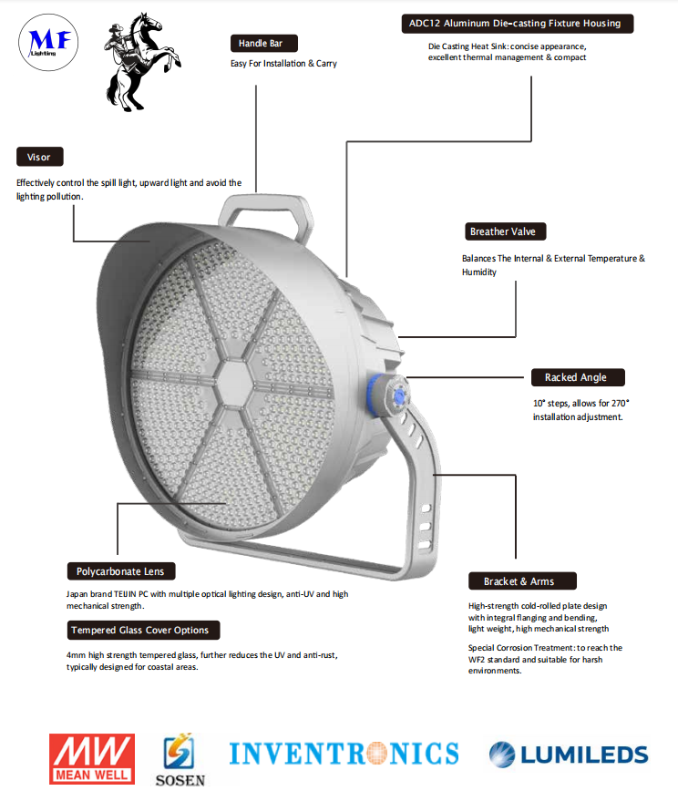 IP66 150lm/W±5% 2700K-6500K Cowboy Family LED High Mast Light for Sport Court/Stadium/Hockey Field