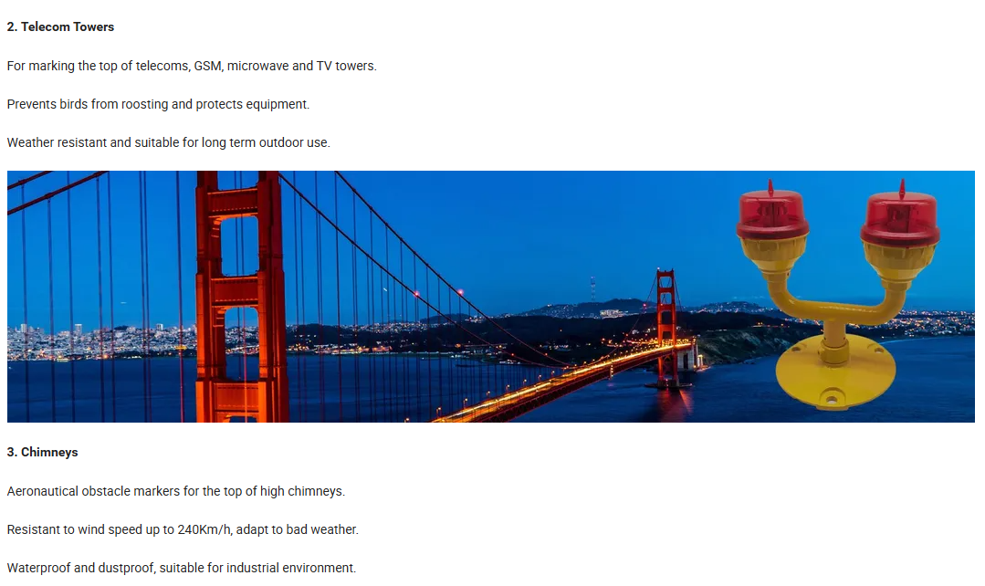Main-Standby Adjustable Wide Voltage Input UV-Resistant Polycarbonate IP66 Low-Intensity Dual-Lamp Aviation Obstacle Obstruction Light For Bridge Images |
